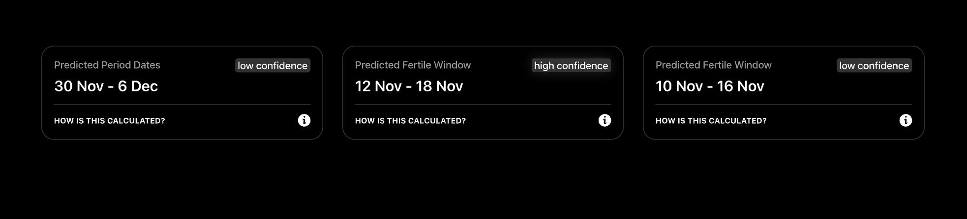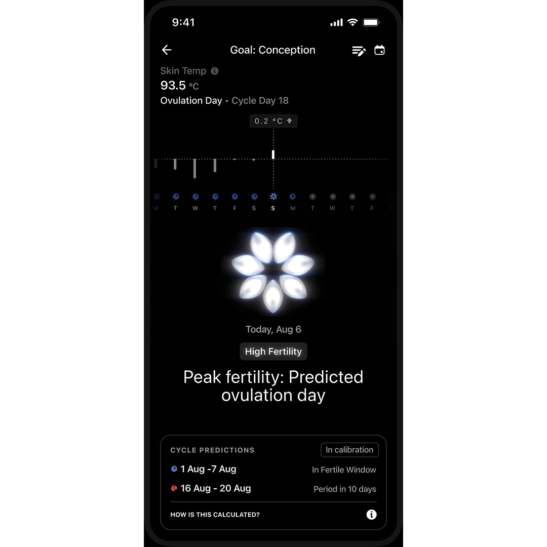 The 7-day fertile window is predicted by tracking biomarkers like skin temperature, RHR, and HRV throughout the cycle. These patterns help estimate fertile days before ovulation. Accuracy improves as more data is collected and analyzed over time.